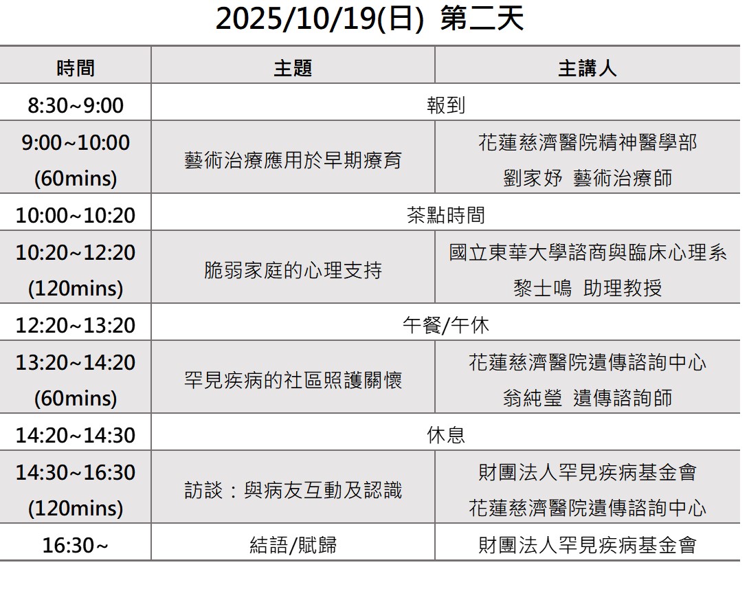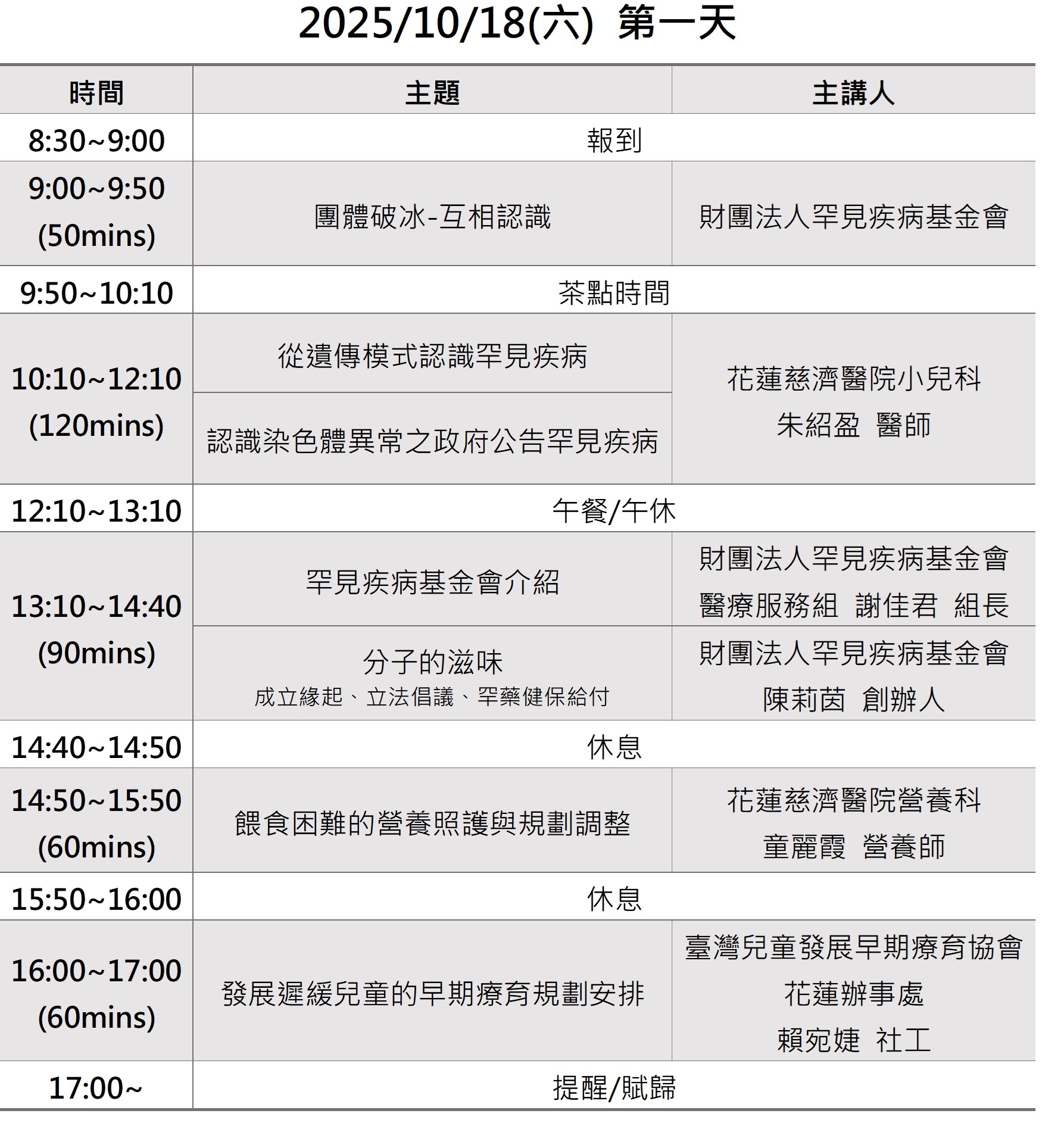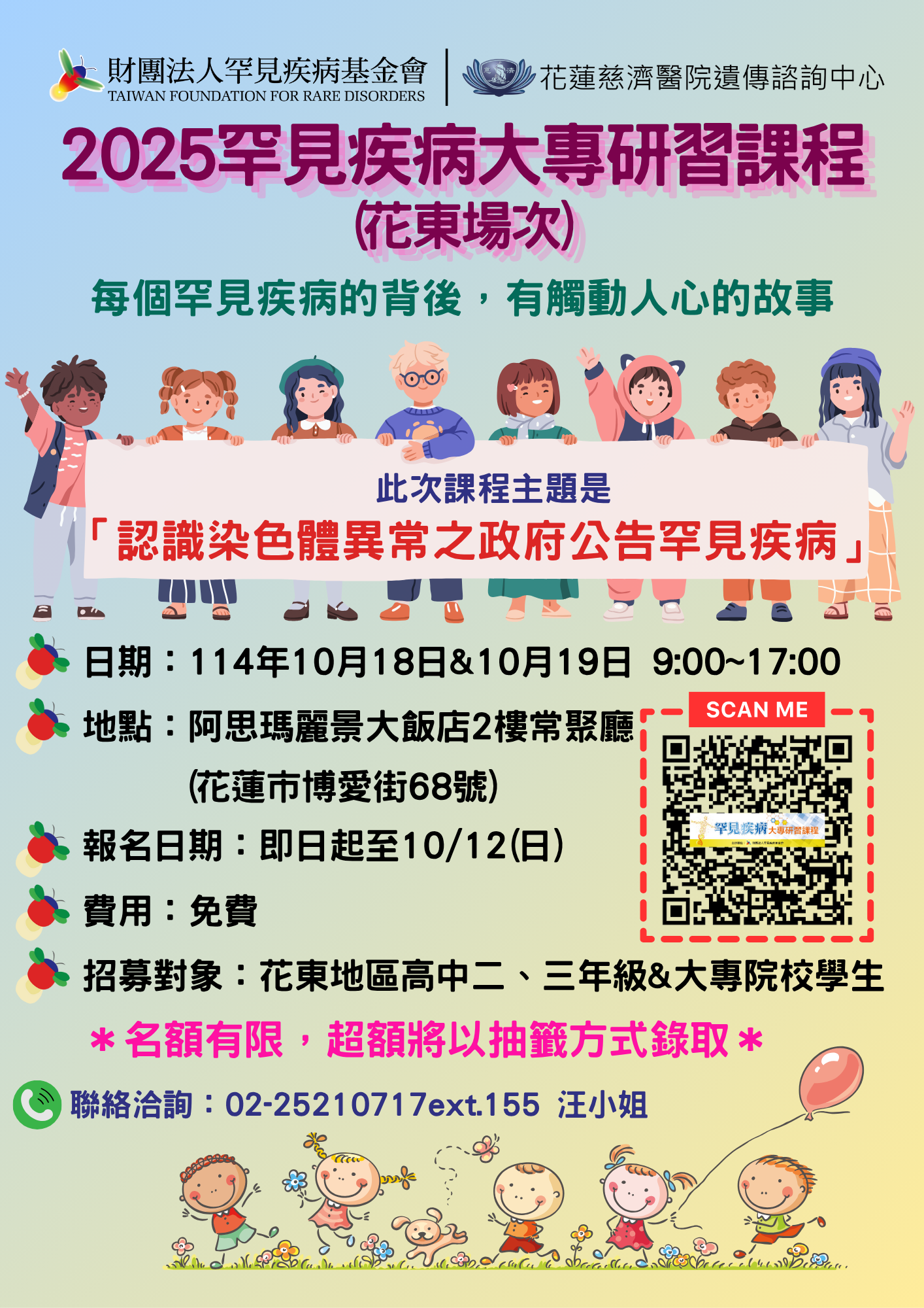 【訊息公告】2025罕見疾病大專研習課程(花東場次,兩天連續課程)~歡迎報名參加