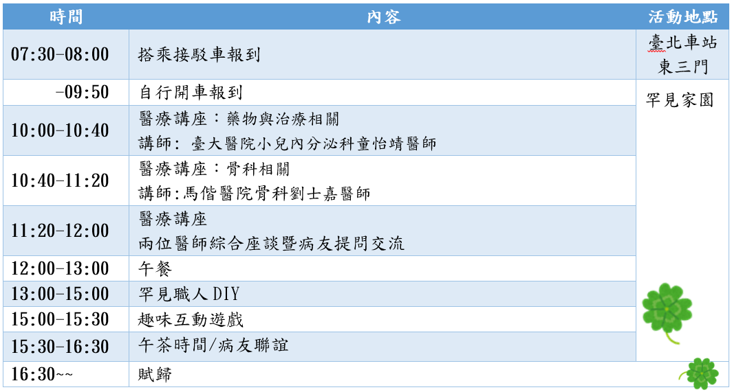 ✽活動地點:罕見家園 (新竹縣關西鎮東平里9鄰小東坑7之6 )