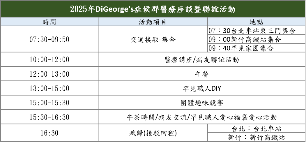 ✽主辦單位: 財團法人罕見疾病基金會/ 狄喬治氏症病友聯誼會