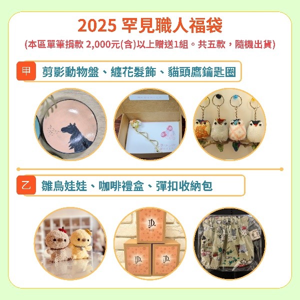 ●捐款2,000元(含)可獲得『罕見職人愛心福袋』1組