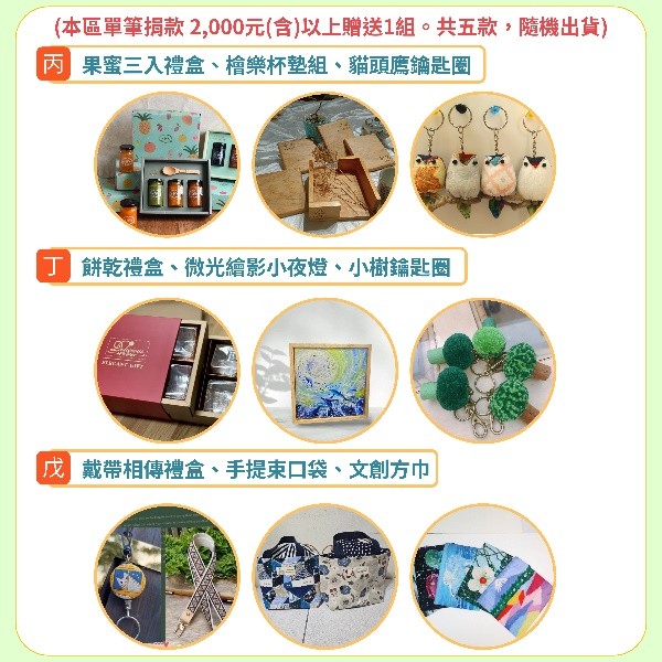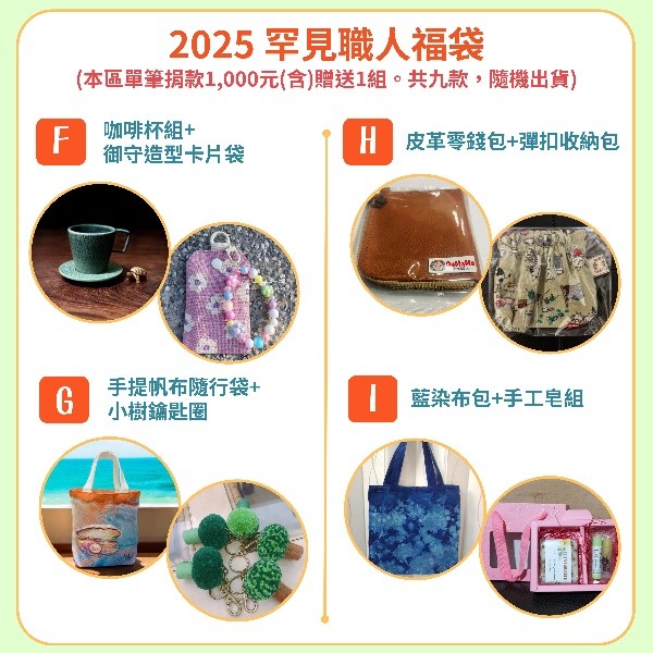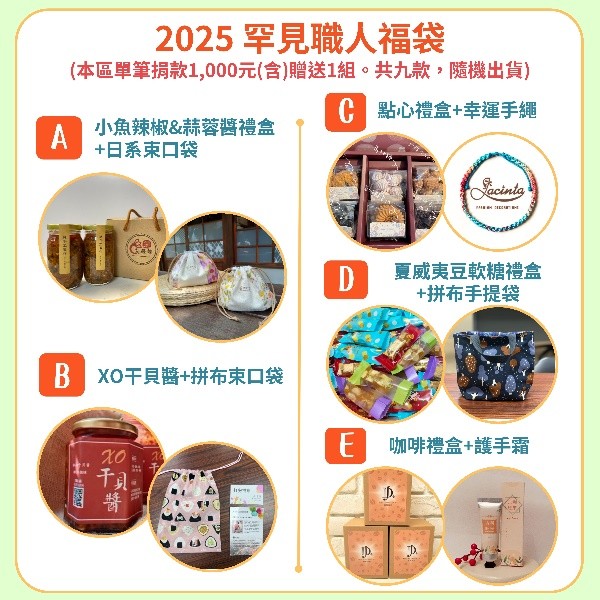 ●捐款1,000元(含)可獲得『罕見職人愛心福袋』1組