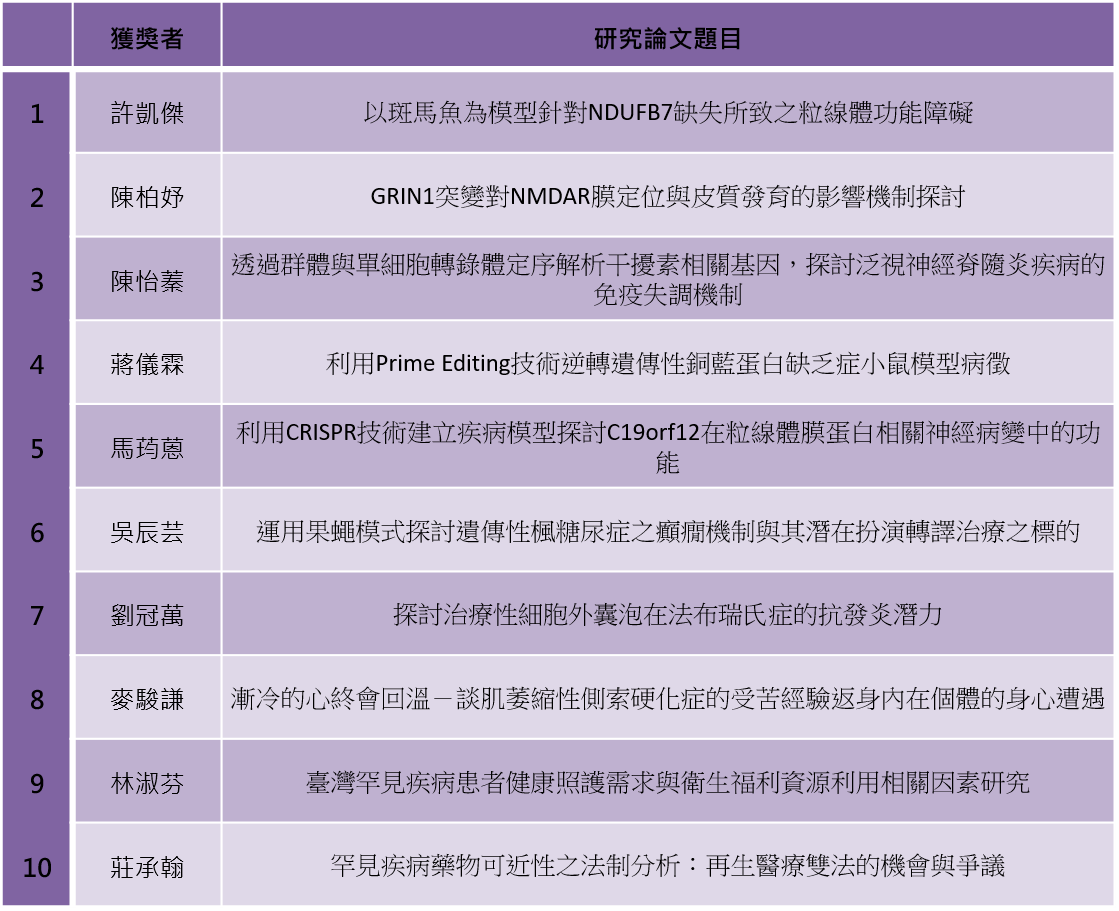 【訊息公告】第27屆罕見疾病博碩士論文獎助名單出爐囉!