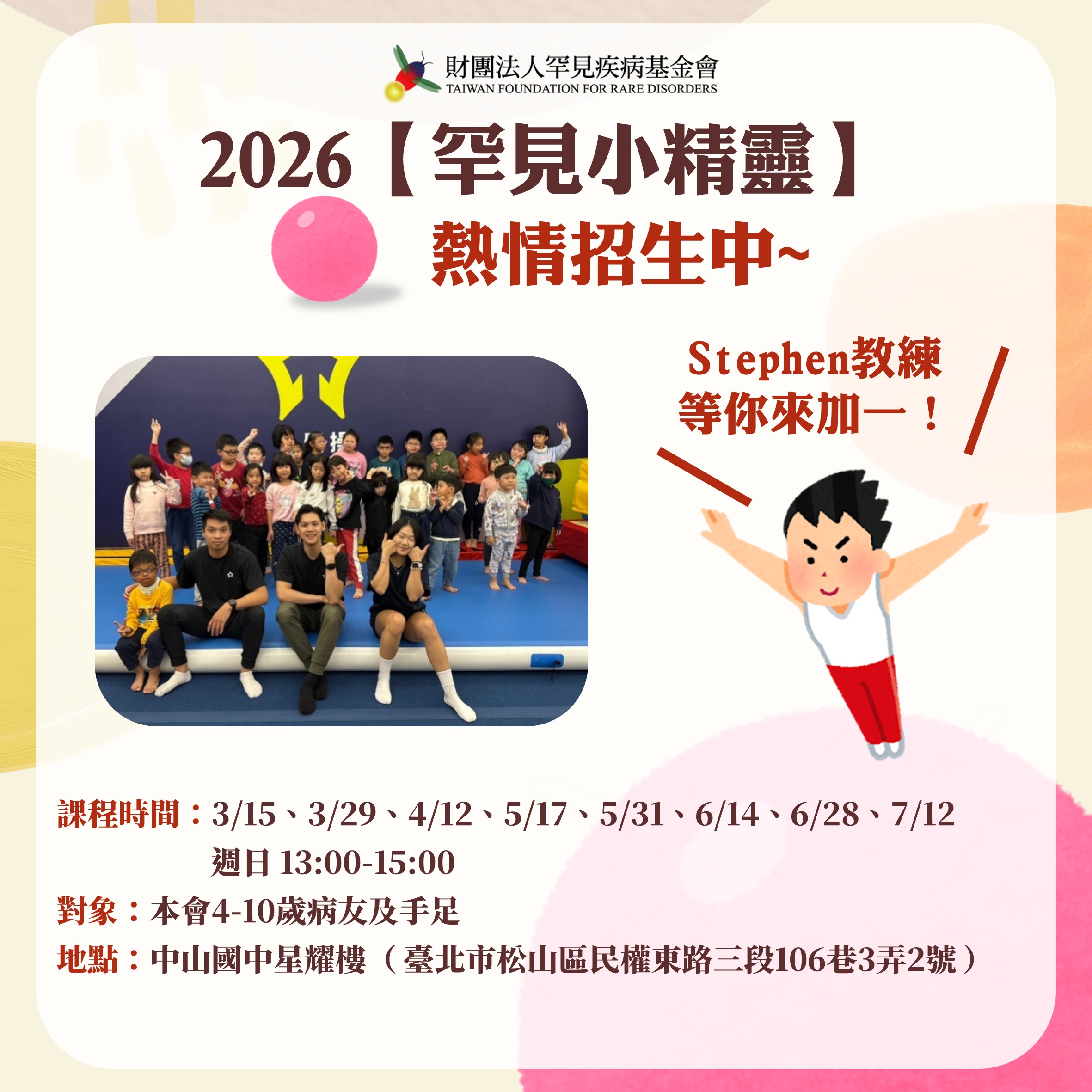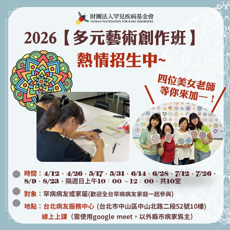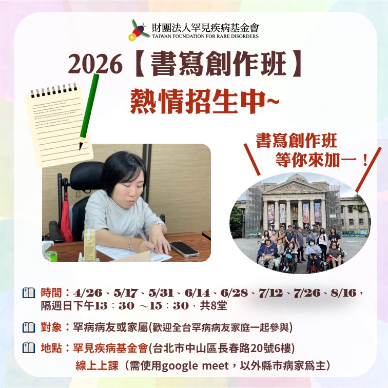 對象:本會罕見疾病病友或家庭照顧者,北部地區病家以實體上課為主;另開放20名線上課程參與名額予中南部之病家共同參與。