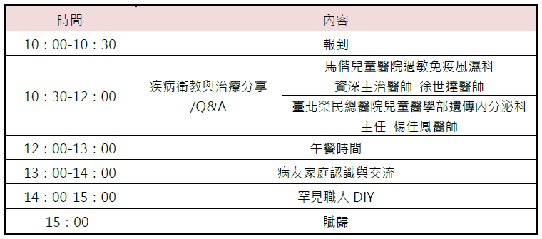 主辦單位:財團法人罕見疾病基金會、社團法人台灣弱勢病患權益促進會