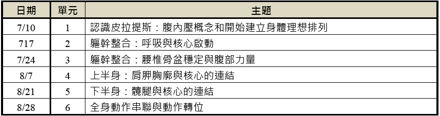 上課時間:預計7/10、7/17、7/24、8/7、8/21、8/28,每週五10:30~11:30 (一次一小時,每周一堂),共計6堂課。