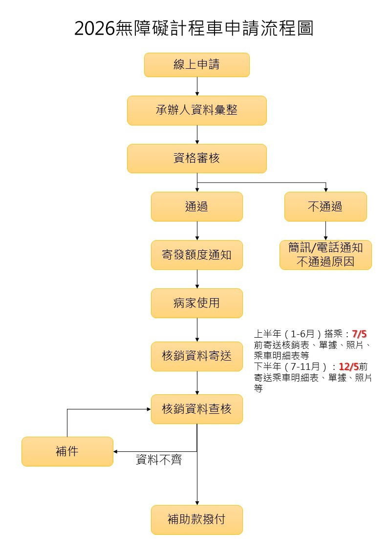 2、補助期間:2026年1月1日起,至11月30日為止。(僅補助此期間搭乘無障礙計程車之單據)