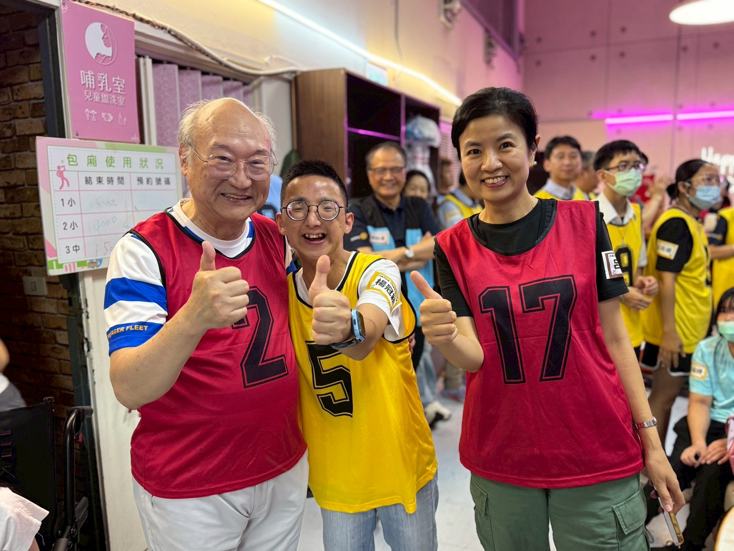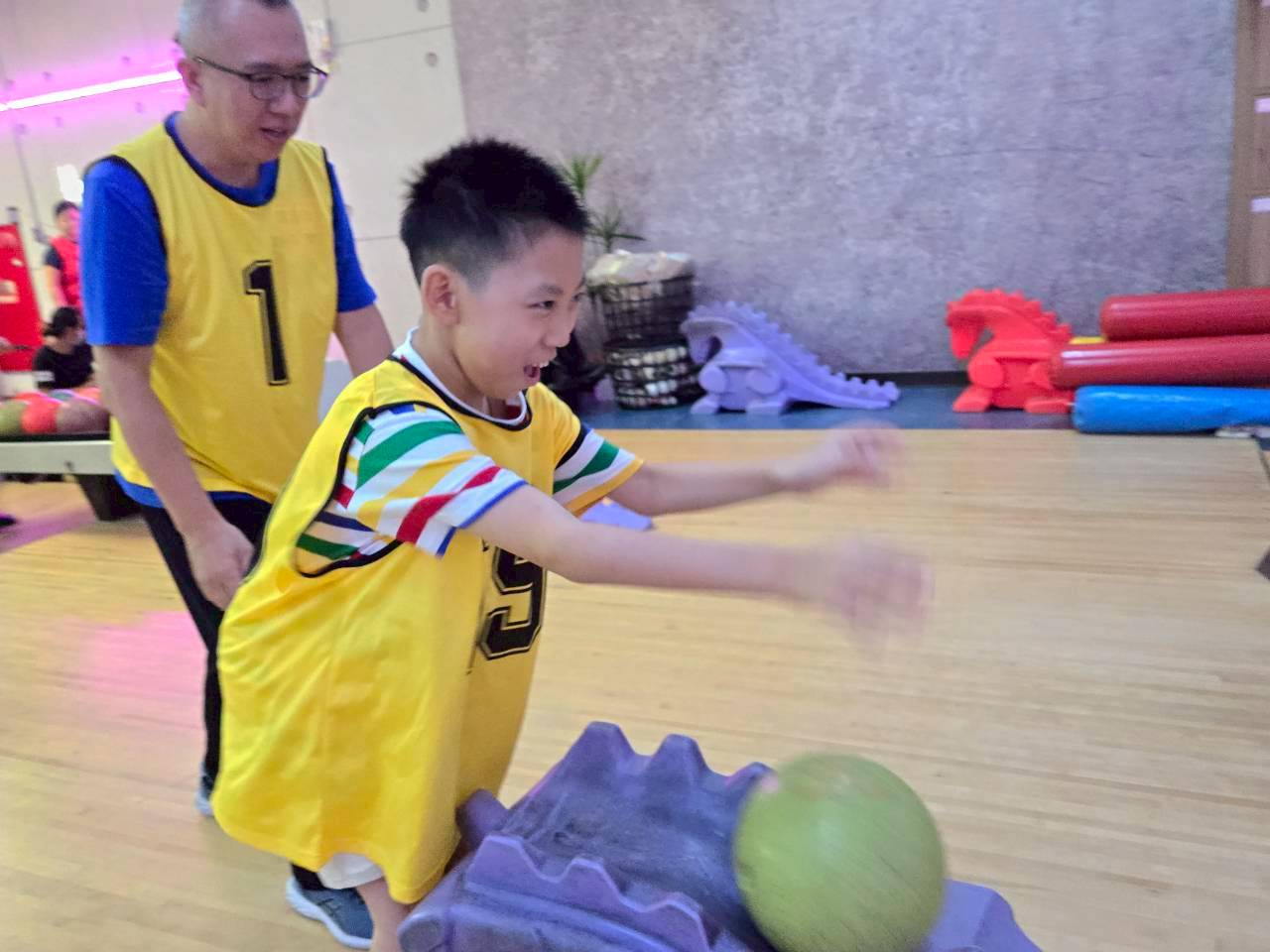 接續的雙人賽同樣精彩,除了家人或夫妻搭檔,現場也有不少與志工臨時搭檔的組合,大家都在短時間內建立默契,力求在有限球數中打出最佳成績。B組延續氣勢,卓飛病友葉秉睿的爸爸葉忠和與志工聯手拿下雙人賽第一名「天衣無縫獎」;A組瓦登伯格氏症病友威佑的外公汪例杰則以個人的高分成績,勇奪「火雞王」稱號,抱回最大獎旋風烤箱,成為全場焦點。
