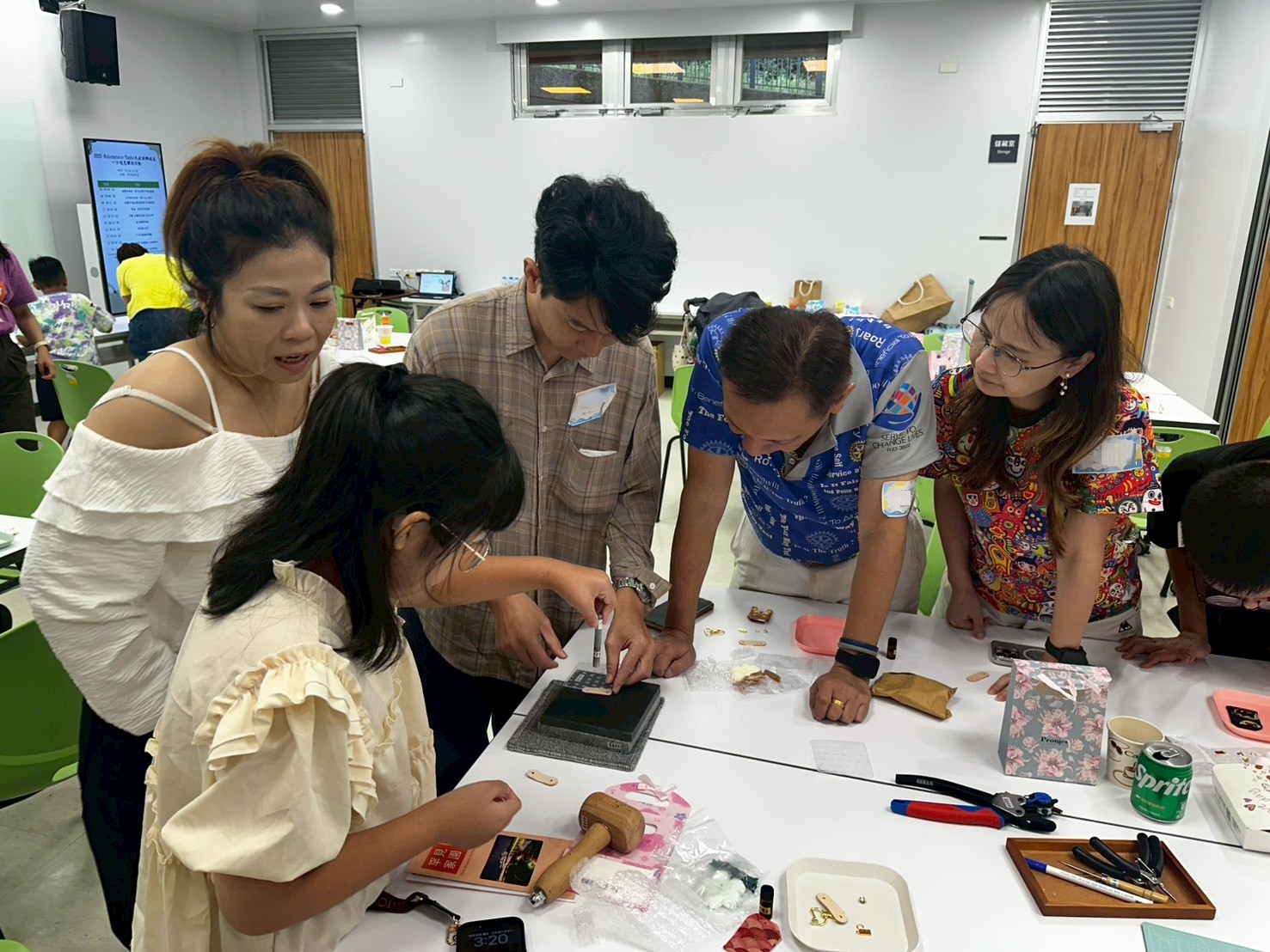 接著,眾人前往關西的「罕見家園」享用午餐並進行交流時光。病友們一同回顧歷屆聯誼活動,透過照片尋找熟悉的身影,分享照護經驗與生活點滴,新舊夥伴之間互動熱絡、氣氛溫馨。下午特別安排「香氛玉守」罕見職人DIY體驗,參與者依指導滴入喜愛的香氛、雕刻專屬圖案或文字,彼此協助、讚美不斷,笑聲充滿整個會場。活動同時準備了香氣撲鼻的雞蛋糕,讓大家在創作之餘享受甜蜜時光。