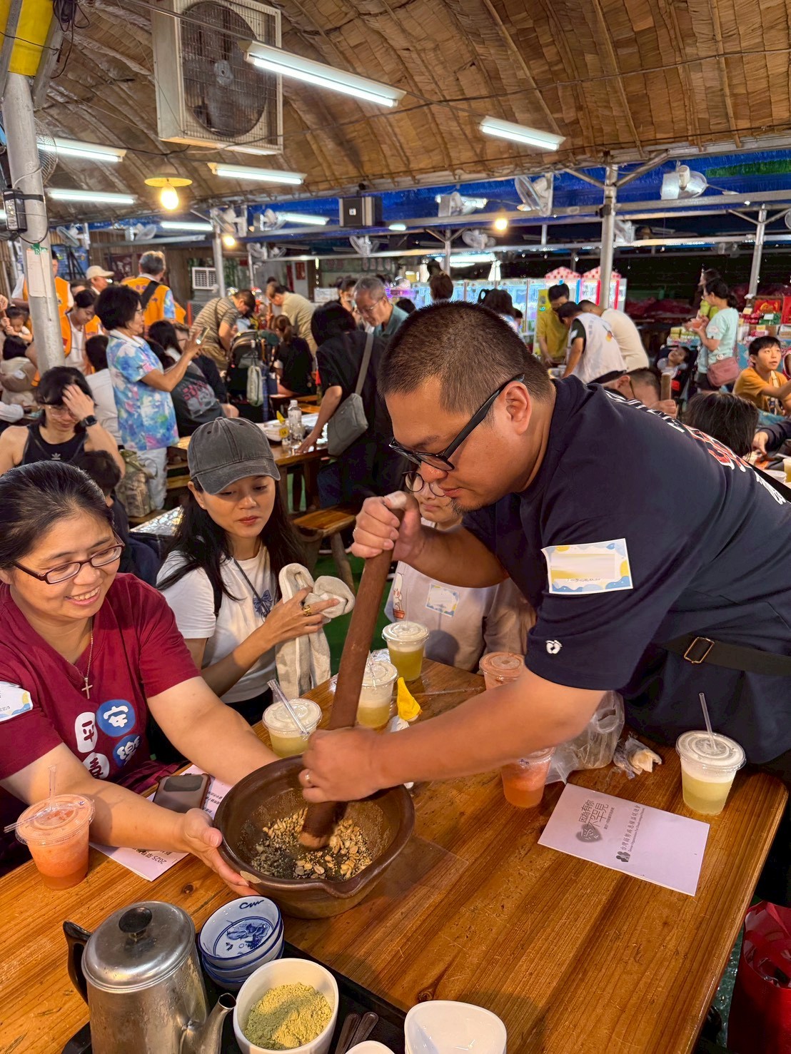 早上,來自全台的家庭齊聚金勇番茄農場,展開多樣的農場體驗。導覽人員詳細介紹各種番茄品種,並邀請大家試吃不同風味的番茄與現打果汁。隨後進行麻糬與擂茶DIY,大家興致高昂地拿起木杵搗糯米,齊心完成香甜軟Q的麻糬,再搭配親手磨製的擂茶,溫暖又滿足。最後的採果體驗中,五彩繽紛的番茄讓人驚喜連連,大家合影留念,為上午行程劃下美好句點。