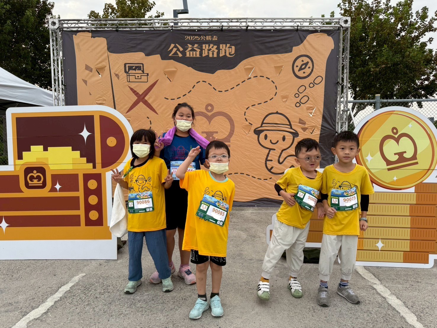 11/1(六)公勝保經於台中市中央球場舉辦「公勝盃」公益路跑分享愛活動,當日天還沒亮,罕病30位病家便興致勃勃的來到現場,一起由舞台區專人帶領暖身運動,大家跟著音樂一起動起來,帶著興奮的心情開啟路跑體驗。活動由10K活力組鳴聲起跑後,熱絡開始~孩子們高聲為家長加油,接著3.5K健走尋寶組也出發做親子體驗、補給站補充熱量繼續向前,首次嘗試路跑的孩子在家長陪同下陸續達標,完成自我挑戰!另一區則設有體驗活動,讓病友能開心闖關,第一關從眾多積木辨識顏色,完成指定色;第二關是運用手眼協調完成懸吊大玩具;第三關是體驗手部精細功能,因疾病影響身體不同功能,這幾關對於病友來說是兼具好玩又有挑戰性,一般人看似簡單完成,但病友完成時更具成就感。