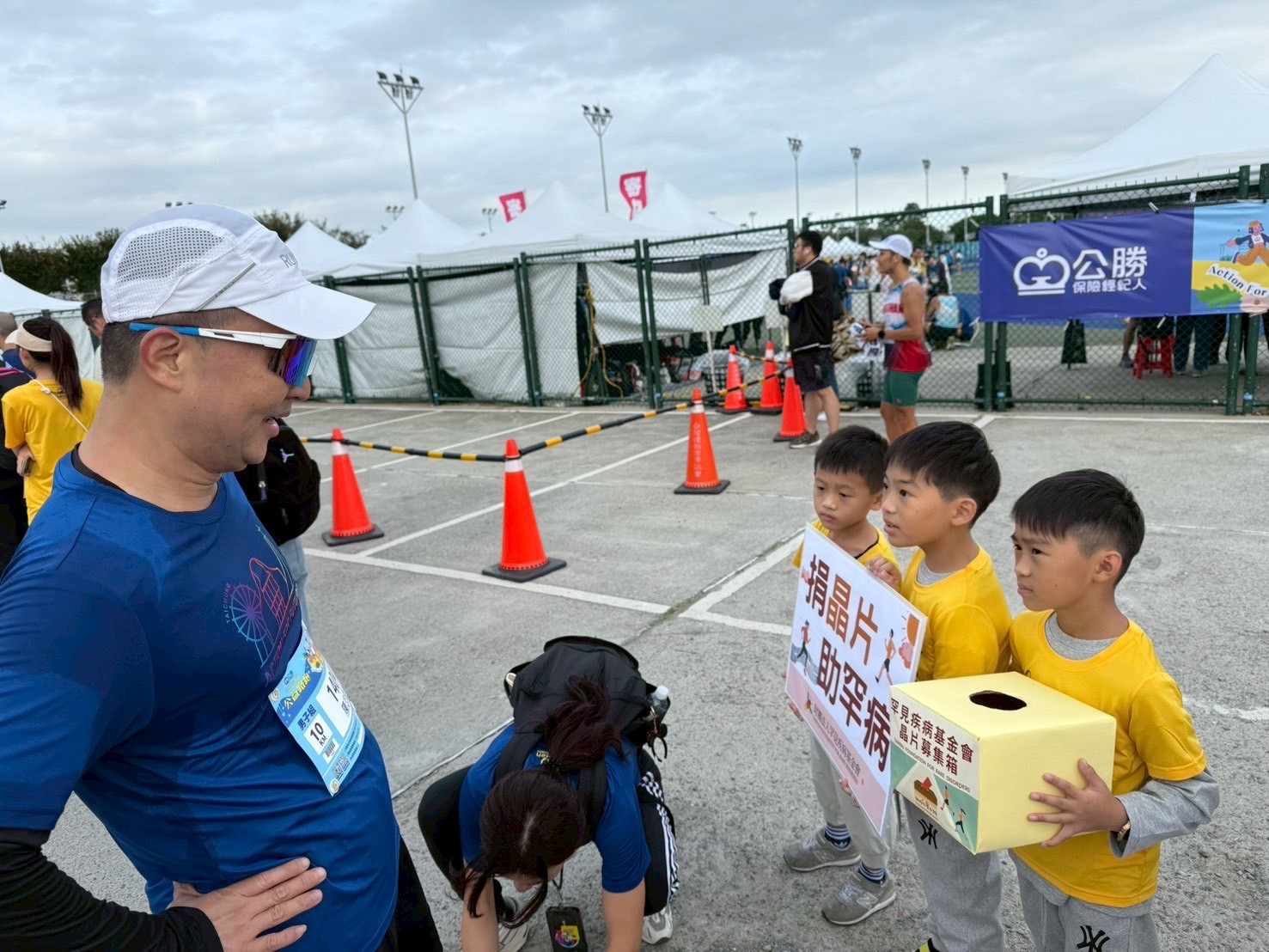 主辦單位更貼心安排波利見面會,很多孩子們開心手舞足蹈,讓舞台區熱鬧滾滾,歡笑聲不間斷;感謝公勝保經長期支持罕病,安排隆重的捐贈儀式後,大家也一起賣力募集晶片,等待10K跑者陸續回到終點時,大夥一起在終點當啦啦隊為跑者加油,跑者努力用身體力行做公益,當孩子們看到爸媽跑回終點那刻,興奮又激動,更賣力大喊捐晶片助罕病!感謝罕病家庭一起募集晶片、主動彎腰協助跑者解晶片,更感謝當日10K跑者捐335顆晶片,共募得35,000元幫助罕病家庭。公勝攜手跑者用運動結合公益,用行動分享愛,也讓罕病家庭親子體驗路跑,自我挑戰又能助人做公益,讓病友也從中獲得價值感,感謝罕病被看見,讓愛不罕見!