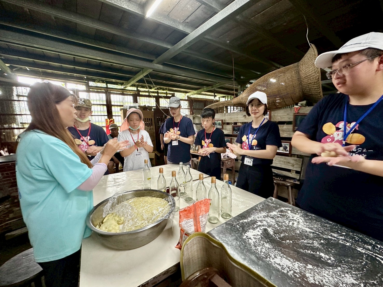 清晨從台北出發,孩子們搭上遊覽車直奔新竹關西的金勇番茄農場,抵達後,與公勝保險經紀人公司志工一起製作客家麻糬與擂茶。搗麻糬的節奏聲、研磨茶葉的香氣交織成一曲歡樂的序曲,青少年們賣力投入,笑聲不斷。午餐後,大家特地前往關西老街,特別邀請在地導覽老師領路,恰逢稻米彩繪節,青少年們欣賞了大型的稻田創作圖案,更穿過稻田,參觀關西書院與古老街屋,讓大家深刻體會關西在地的人文特色與老一輩的生活作息。