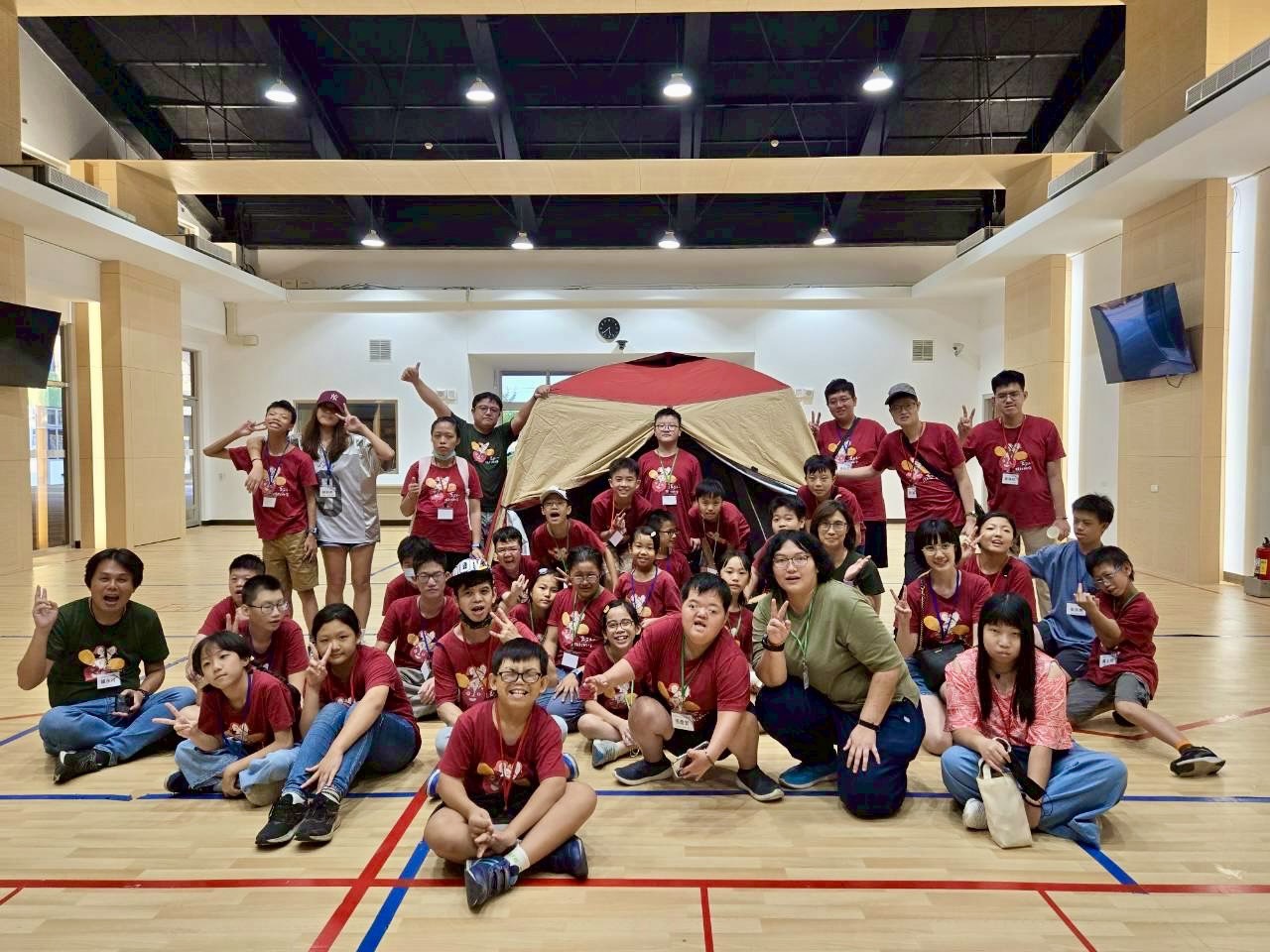 結束戶外行程後,原以為能回家園休息,沒想到挑戰才正要開始,工作同仁早已準備好帳篷,要讓孩子們體驗一場「家園露營」!考量天氣炎熱讓孩子們更能舒服暢活,帳篷選擇搭在室內簡報會議廳而非戶外草皮,青少年們七手八腳組裝的過程笑鬧連連,對於鮮少露營的青少年們來說,無疑是一次別具風味的嶄新體驗。當夜幕低垂,大家窩在帳篷裡聊天、分享心事,久違的團體氛圍與相互陪伴的溫度,讓每個人都感受到被理解與連結的力量。