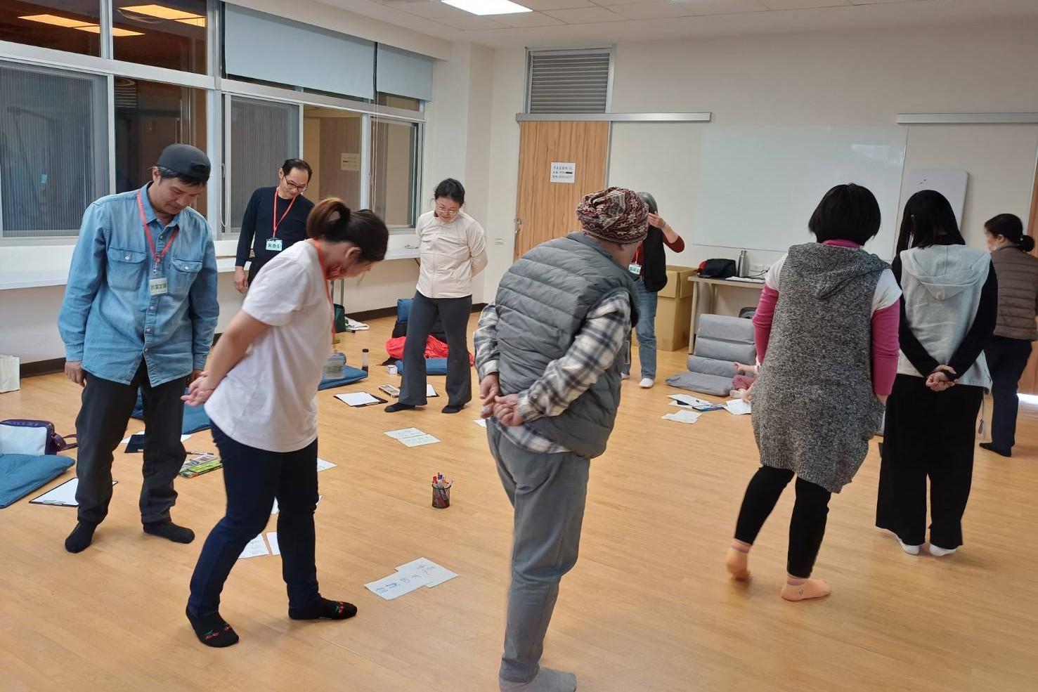 八月中旬大家跟老師初次見面,淑姿老師解釋了一下正念與身心調頻的用意,帶給大家基本的概念,並利用分組活動讓成員互相認識與交流分享,到後來幾乎是兩周到三周才見一次面,中間空檔的時間就布置家庭作業與練習,引領大家在課堂上或生活中都能實踐練習,一步步走入正念的世界,學會靜心與面對自己。下午的課程,則是由專業的佛朗明哥舞蹈老師~文卿老師則帶著成員活動肢體,搭配風格獨特的佛朗明哥舞曲,大夥在輕快的舞步中找到自我的生活節奏,也徹底放鬆壓抑許久的困頓。