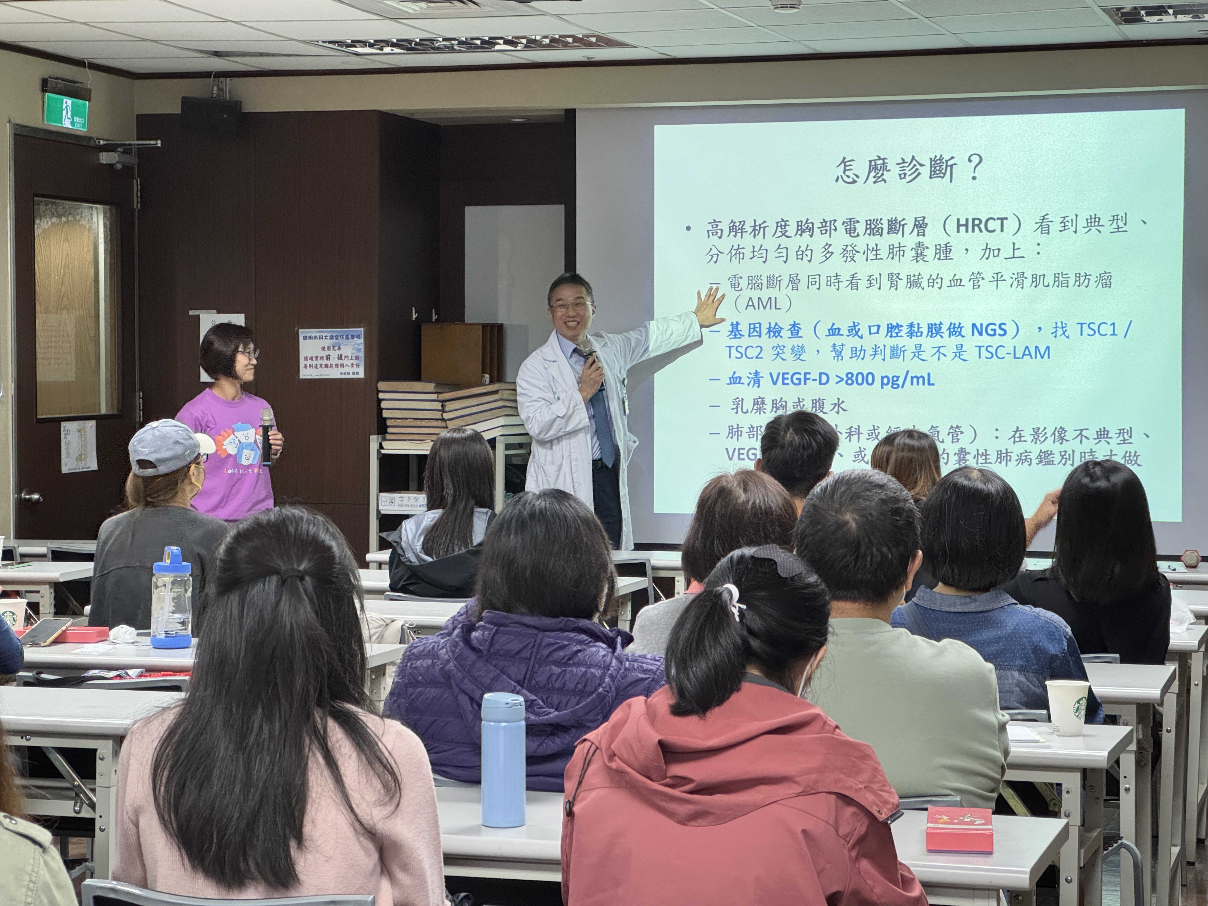 LAM 為一種罕見的平滑肌細胞不正常增生疾病,可能影響肺部、肋膜、縱隔腔、胸管及腹膜後腔等部位,且多好發於青春期至孕齡期女性。相似的發病年齡與生活歷程,使病友更願意從各地前來參與活動,一同瞭解醫療照顧要點,也在交流中獲得理解與支持。