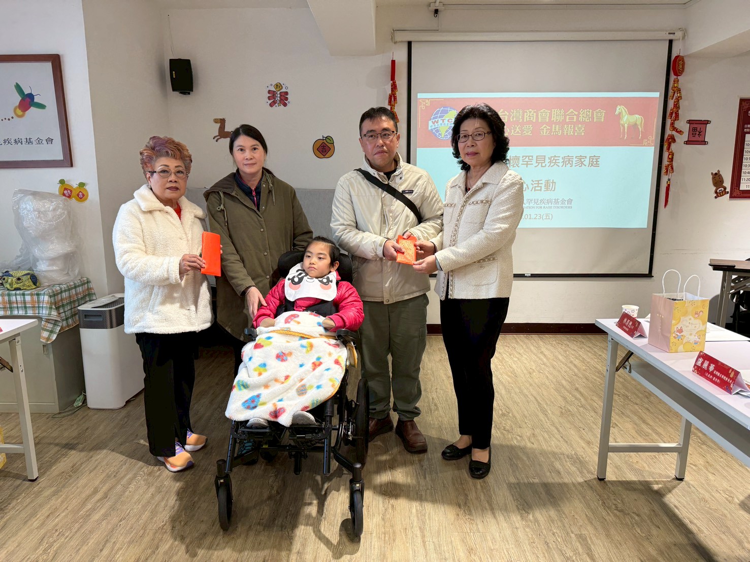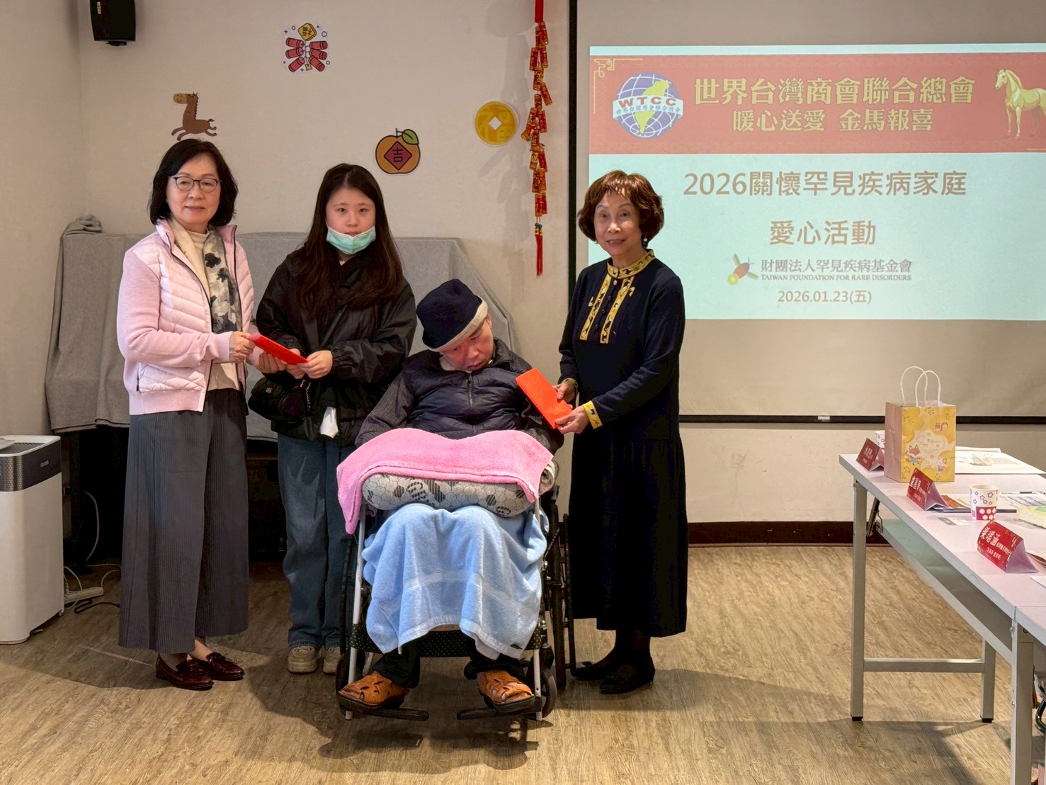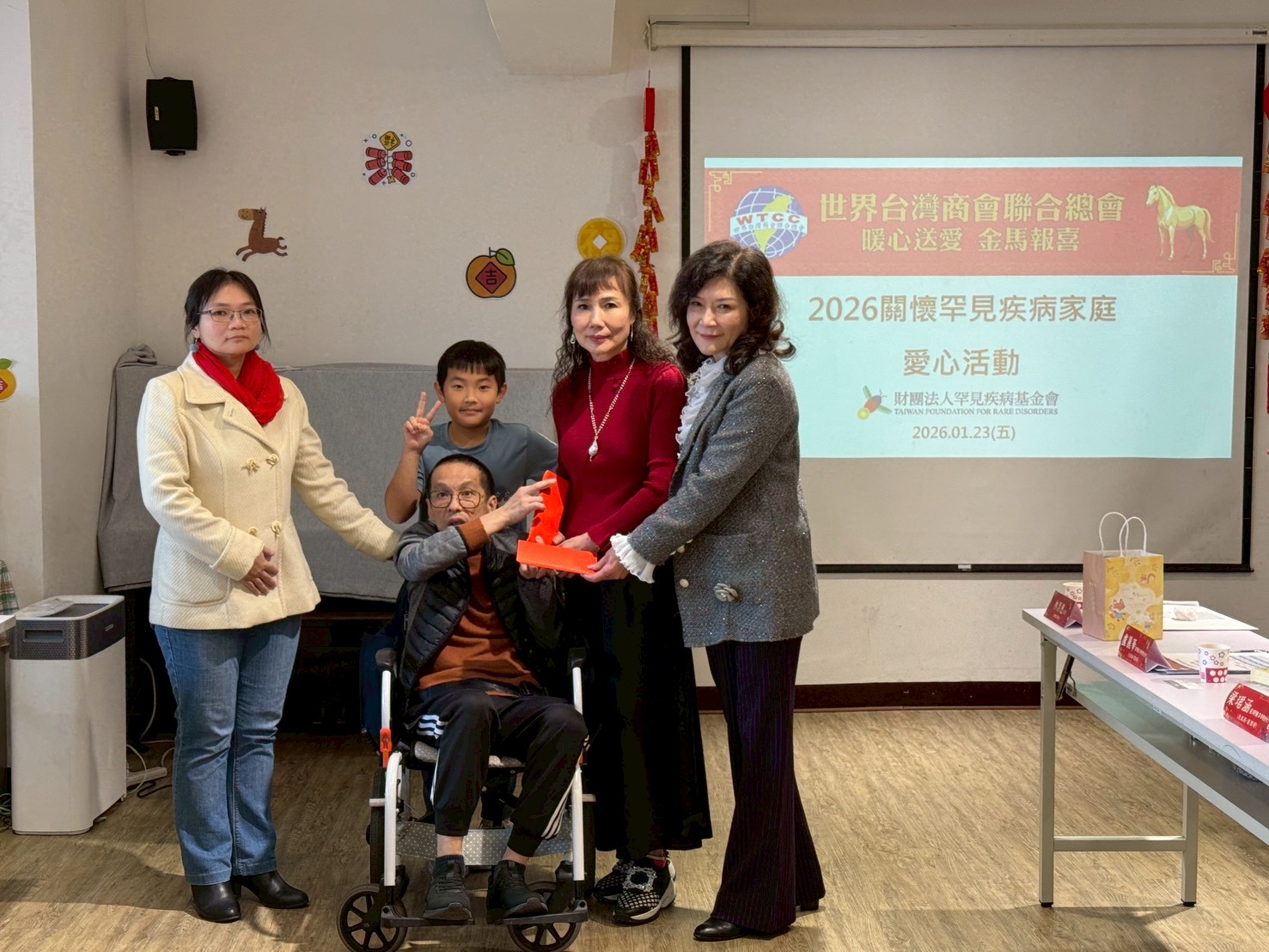 農曆春節將至,愛與關懷也隨之回到家鄉,自2010年起,世界台灣商會聯合總會凝聚眾多在世界各地努力打拼的台商們,每年在歲末迎春之際回到故鄉台灣,用實際行動關懷國內弱勢族群,為需要幫助的家庭送上最溫暖的支持。2026年1月23日(五)由世總李珍總會長夫人以及陳秀銀副主任委員,偕同 15 位世總委員們熱情參與。同時,也有世界台灣商會聯合總會青商會的林育萱財務長、曾瑞瑜監事長與會,連續第二年號召更多年輕世代加入公益行列,展現世總薪火相傳、愛心一棒接一棒的精神,為罕病家庭送上溫暖。此外,特別感謝中華民國僑務委員會張良民副委員長蒞臨以及不克前來的陳淑芬主任委員這段期間,居中奔波聯繫共49位委員響應捐款,每一段的恩情對我們都是意義重大。