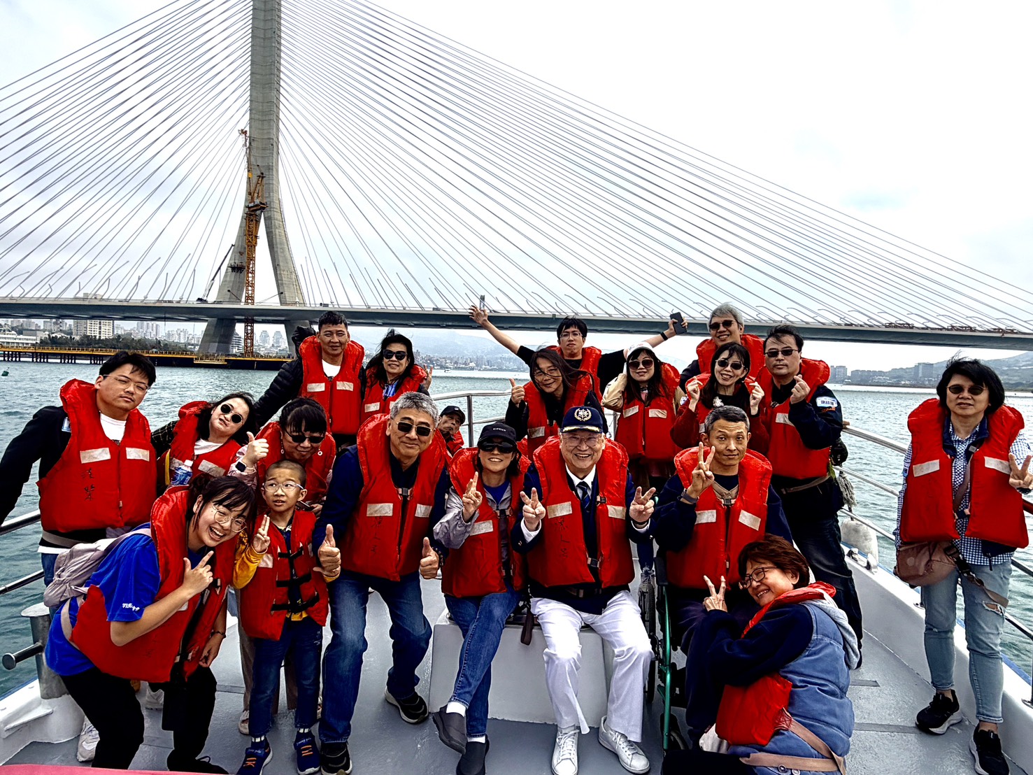 航程中,船隻緩緩駛向淡水跨海大橋,這座去年完工、今年即將啟用的大橋雄偉壯觀,大家在橋下仰望,紛紛拿起相機捕捉畫面,留下珍貴的藍色回憶。同時,中午豐盛的午餐款待,一旁的各扶輪社友輪番上台高歌助興,讓大家就像一家人般的親近互動,也讓病家深深感動。再次感謝松智扶輪社及所有協助的團體夥伴,讓病友與家屬能有這段難忘的體驗,我們也期待未來能持續攜手參與淨海保育,讓公益與環保並行,共同守護台灣的美麗海洋。