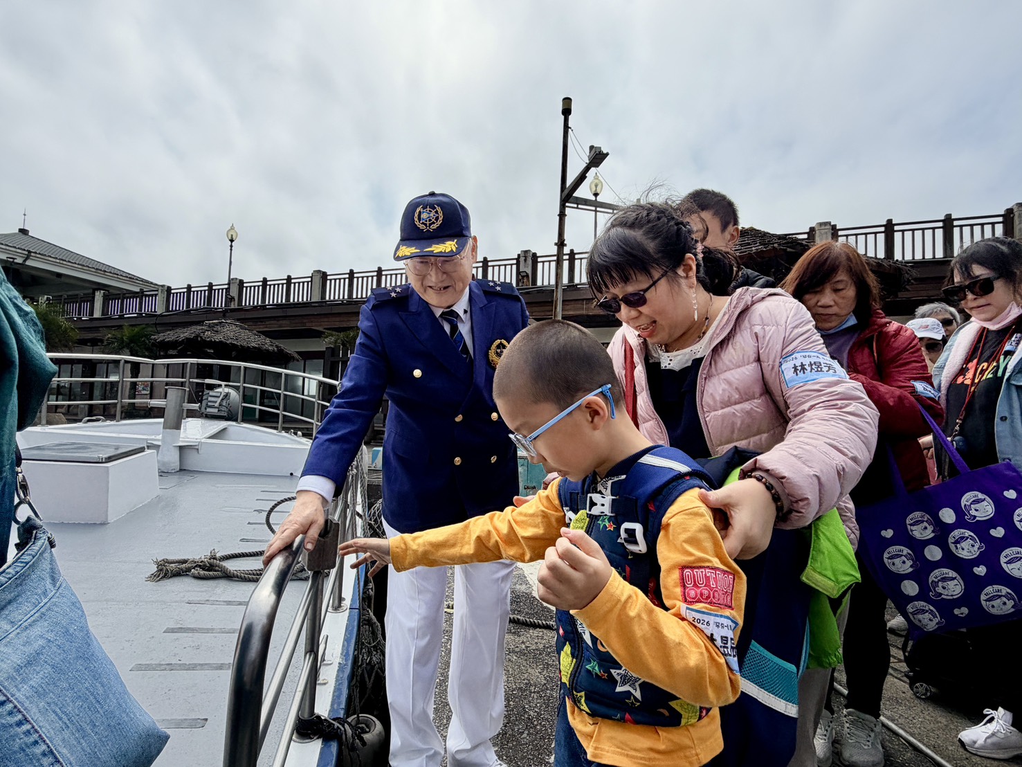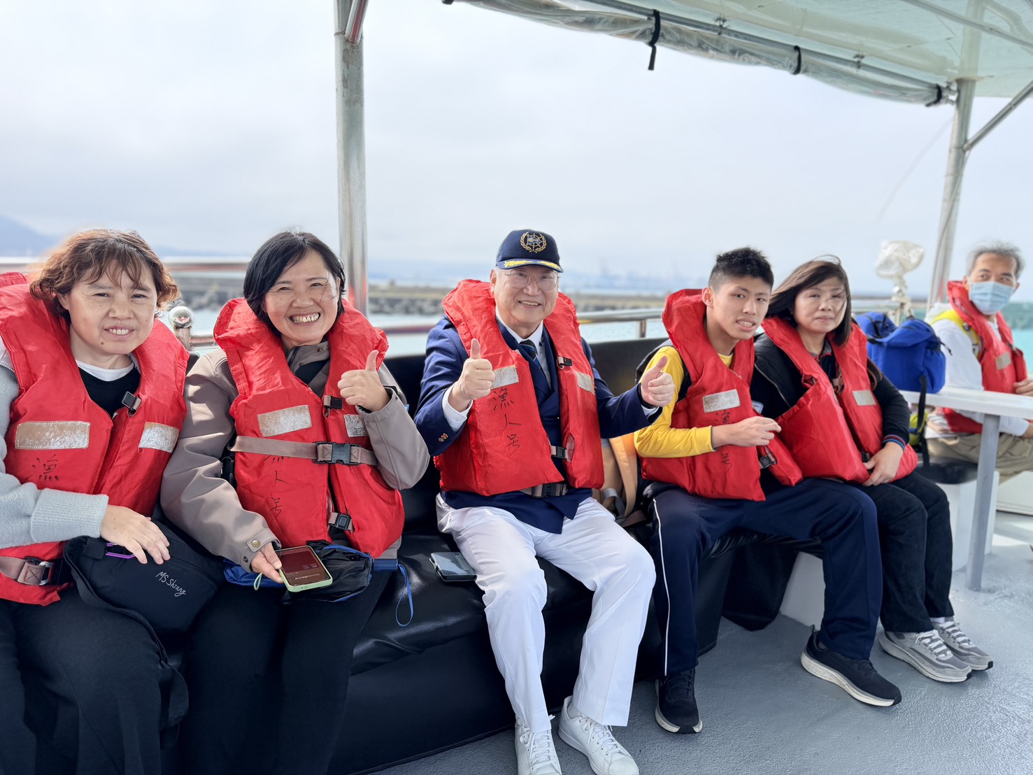 今年春天3/22(日),松智扶輪社在呂佳紋社長號召下,邀請 38位病友及家屬、18個病家家庭齊聚淡水,參與2026「生態保育淨海淨灘聯合服務」,從領袖海洋淡水遊艇碼頭登船,乘坐氣派的「漁人號」遊艇,展開一段難得的旅程。雖然早晨天氣陰晴不定,但在乘船時幸運見到陽光,讓整趟航程更添溫暖。許多病友第一次登船,臉上難掩興奮與好奇,彼此的笑聲此起彼落,大家穿上橘色救生背心,隨著船身輕輕搖曳,在海風的吹拂中盡情感受海洋的律動。部分病友更走向甲板,靠著扶手迎風眺望,任由船身搖曳與浪花拍打,享受與大海相遇的自在時刻。