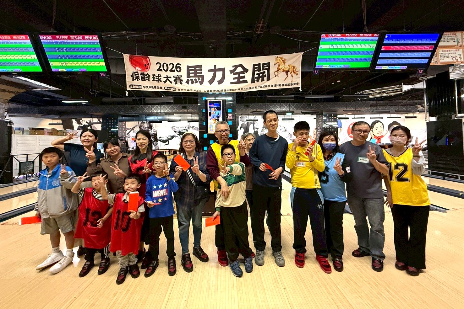 本會今年首場大型活動「2026馬力全開 歡樂活力親子保齡球大賽」於3月20日(五)晚間在E7PLAY新莊店舉辦,活動由台北市東門扶輪社與安致勤資公益信託社會福利基金共同響應,邀請罕見疾病家庭與企業志工齊聚一堂,以輕鬆活潑的運動形式促進互動交流與情感連結。活動共計152人參與,包含罕病家庭39家117人,以及東門扶輪社10位與安致勤資25位夥伴,共同營造溫馨熱鬧的活動氛圍。